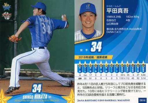 Japanese title: BBM/レギュラーカード/横浜DeNAベイスターズ/BBM2019 横浜DeNAベイスターズ DB16 [レギュラーカード] : 平田真吾