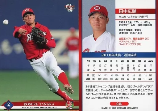 Japanese title: BBM/レギュラーカード/BBM2019 広島東洋カープ C46 [レギュラーカード] : 田中広輔