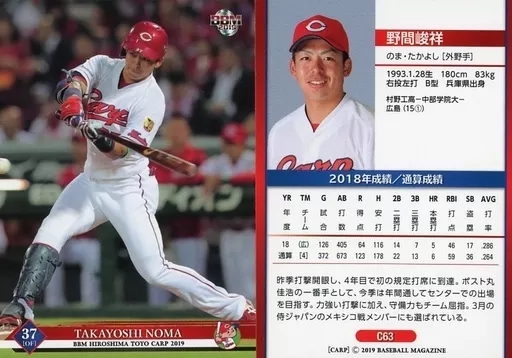 Japanese title: BBM/レギュラーカード/BBM2019 広島東洋カープ C63 [レギュラーカード] : 野間峻祥