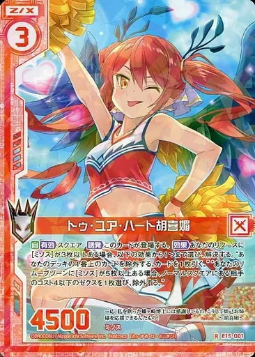 Japanese title: ゼクス/R/ゼクス/赤/EXパック 『ゼクス ドリームホロパック ゼク・ドリ』 E15-001[R]:トゥ・ユア・ハート胡喜媚