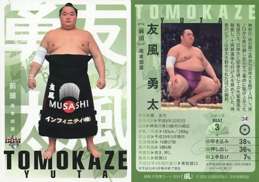 Japanese title: BBM/レギュラーカード/BBM2019 大相撲カード「風」 34 [レギュラーカード] : 友風 勇太