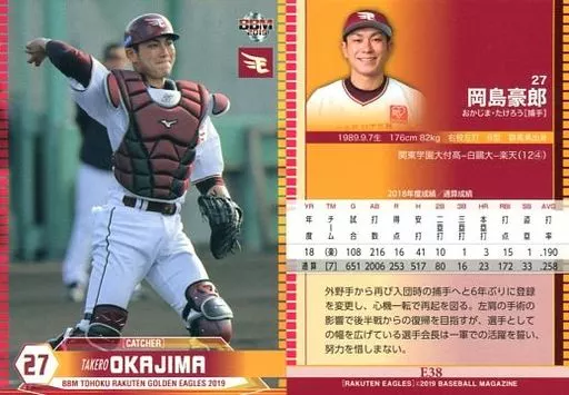 Japanese title: BBM/レギュラーカード/BBM2019 東北楽天ゴールデンイーグルス E38 [レギュラーカード] : 岡島豪郎