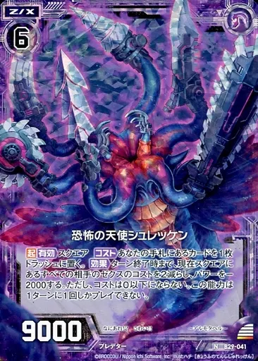 Japanese title: ゼクス/N/ゼクス/黒/第29弾『異姫夢装編 夢を継ぐ星々』 B29-041[N]:恐怖の天使シュレッケン(ホログラムレア)