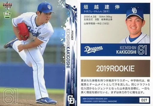 Japanese title: BBM/レギュラーカード/BBM2019 中日ドラゴンズ D27 [レギュラーカード] : 垣越建伸