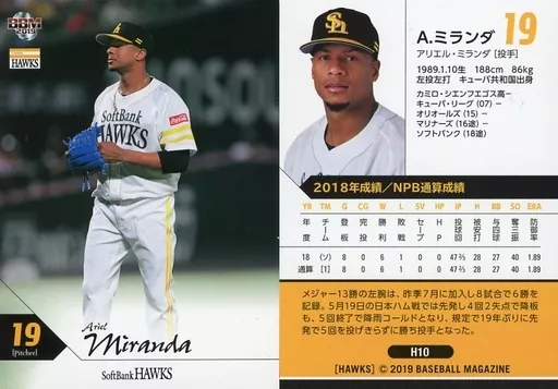 Japanese title: BBM/レギュラーカード/BBM2019 福岡ソフトバンクホークス H10 [レギュラーカード] : A.ミランダ