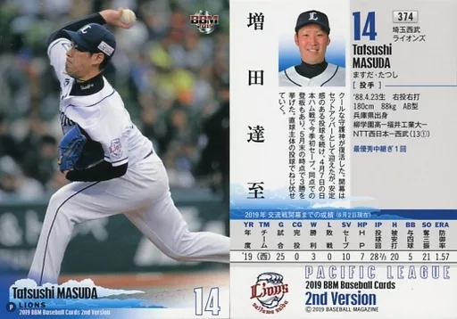 Japanese title: BBM/レギュラーカード/埼玉西武ライオンズ/BBM2019 ベースボールカード 2ndバージョン 374 [レギュラーカード] : 増田達至