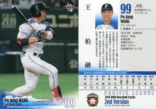 Japanese title: BBM/レギュラーカード/北海道日本ハムファイターズ/BBM2019 ベースボールカード 2ndバージョン 426 [レギュラーカード] : 王柏融(全身)