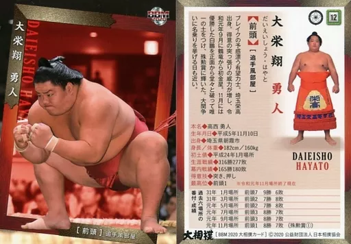Japanese title: BBM/レギュラーカード/前頭/-/BBM2020 大相撲カード 12 [レギュラーカード] : 大栄翔 勇人