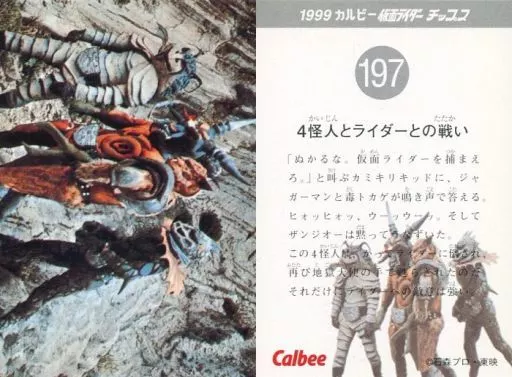 Japanese title: アニメ系トレカ/1999 カルビー 仮面ライダー チップス 第3弾 197:4怪人とライダーとの戦い