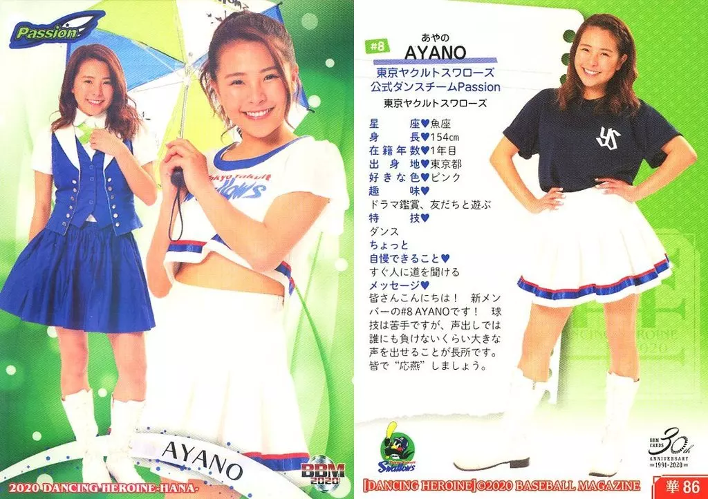 Japanese title: BBM/レギュラーカード/-/Passion/BBM2020 プロ野球チアリーダーカード DANCING HEROINE -華- 華86 [レギュラーカード] : AYANO(パラレル版)