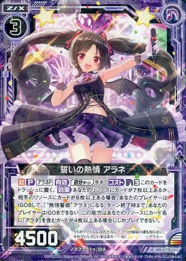 Japanese title: ゼクス/R/ゼクス/黒/ノスフェラトゥ/iDA/EXパック 第26弾「スタート☆フェスティバル!!」 E26-012[R]:誓いの熱情 アラネ