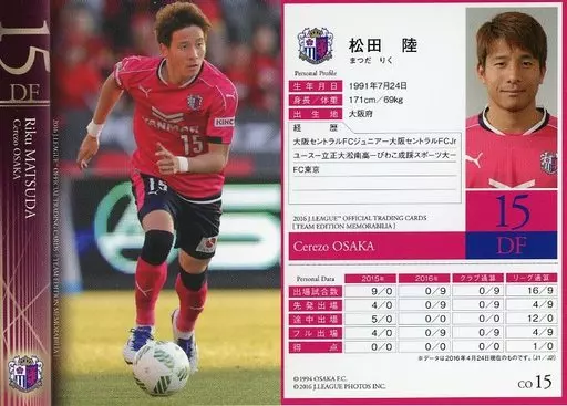 Sports / Regular Card / 2016J League Official Trading Card [Team Edition Memorabilia] Cerezo Osaka CO15 [Regular Card] : Riku Matsuda