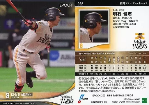 Japanese title: スポーツ/レギュラーカード/2021 NPB プロ野球カード 022[レギュラーカード]:明石健志