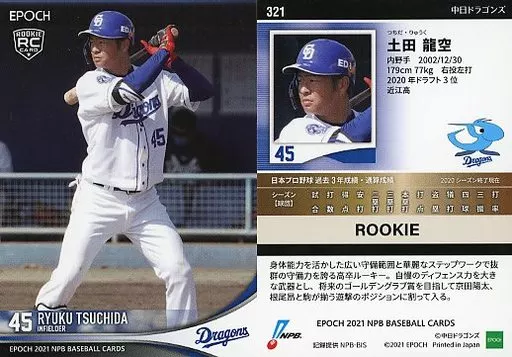 Japanese title: スポーツ/レギュラーカード/2021 NPB プロ野球カード 321[レギュラーカード]:土田龍空