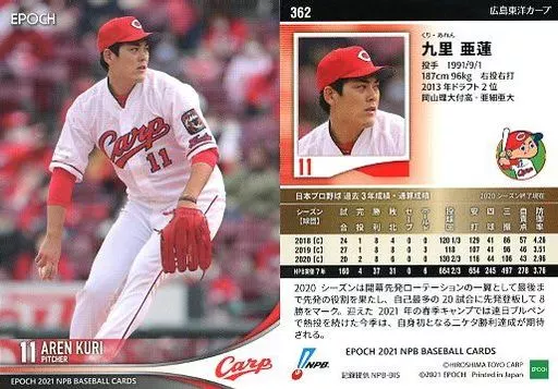 Japanese title: スポーツ/レギュラーカード/2021 NPB プロ野球カード 362[レギュラーカード]:九里亜蓮