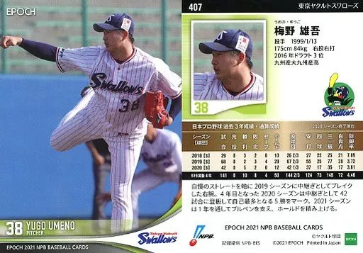 Sports / Regular Card / 2021 NPB Professional Baseball Card 407 [Regular Card] : Yugo Umeno