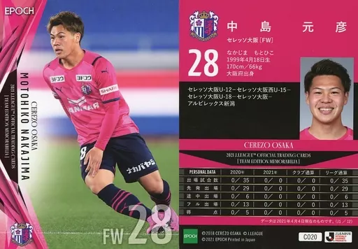 Japanese title: スポーツ/レギュラーカード/2021Jリーグオフィシャルトレーディングカード[チームエディション・メモラビリア]セレッソ大阪 CO20[レギュラーカード]:中島元彦