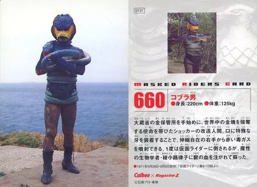 Japanese title: アニメ系トレカ/仮面ライダーチップスR 第4記録 660:コブラ男