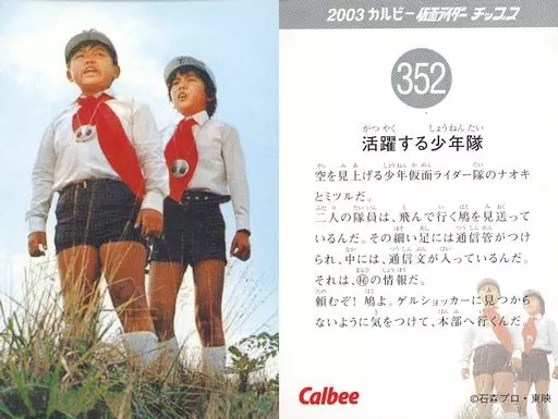 Japanese title: アニメ系トレカ/2003 カルビー 仮面ライダー チップス 352:活躍する少年隊