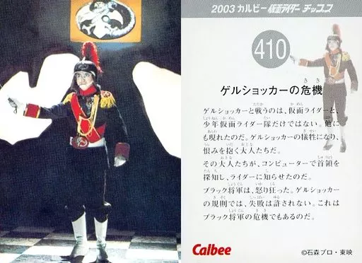 Japanese title: アニメ系トレカ/2003 カルビー 仮面ライダー チップス 410:ゲルショッカーの危機