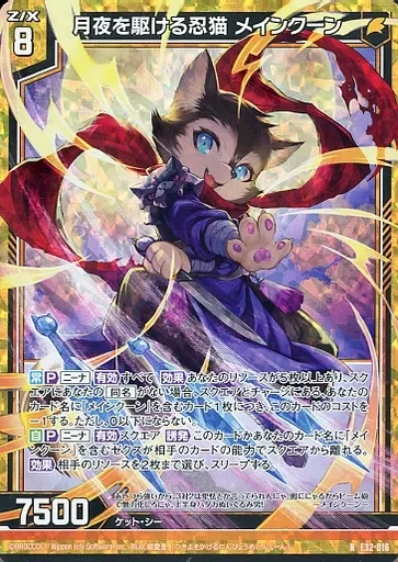 Japanese title: ゼクス/R/EXパック『ゼクスターズ・クロニクル』 E32-016[R]:月夜を駆ける忍猫 メインクーン(ホログラムレア)