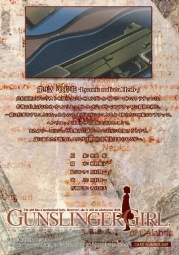 Japanese title: アニメ系トレカ/ノーマルカード/ストーリーカード/ブロッコリー・ハイブリッド・カードコレクション GUNSLINGER GIRL 049[ノーマルカード]:第9話 彼岸花 Lycoris radiata Herb