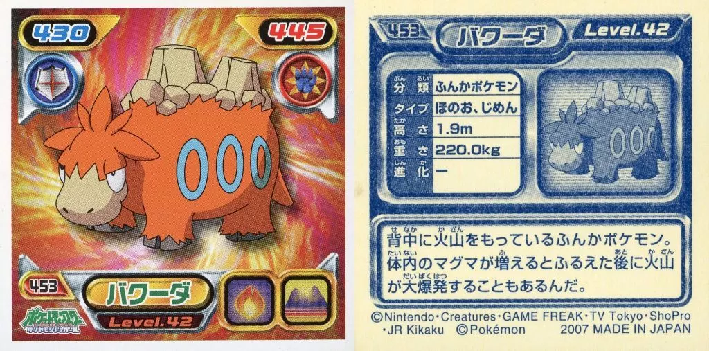Japanese title: コレクションシール/ノーマル/ポケットモンスターダイヤモンド&パール最強シール烈伝5 453[ノーマル]:バクーダ