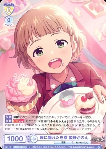 Japanese title: ヴァイスシュヴァルツブラウ/N/キャラ/ブースターパック アイドルマスター SideM ISM/01B-011[N]:瞳に隠れた思惑 姫野かのん