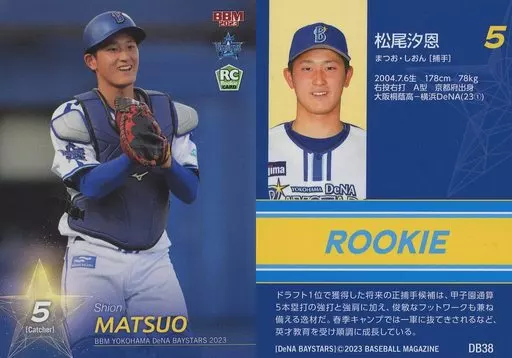 Japanese title: BBM/レギュラーカード/ROOKIE/BBM2023 横浜DeNAベイスターズ DB38[レギュラーカード]:松尾汐恩