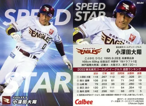 Japanese title: スポーツ/チーム盗塁王カード/楽天/2023プロ野球チップス 第2弾 アマゾンSP箱限定 SS-04[チーム盗塁王カード]:小深田大翔