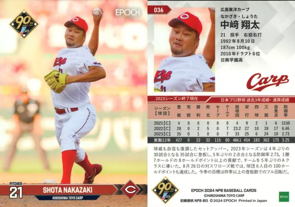 Japanese title: スポーツ/レギュラーカード/EPOCH 2024 NPB プロ野球カード 036[レギュラーカード]:中﨑 翔太