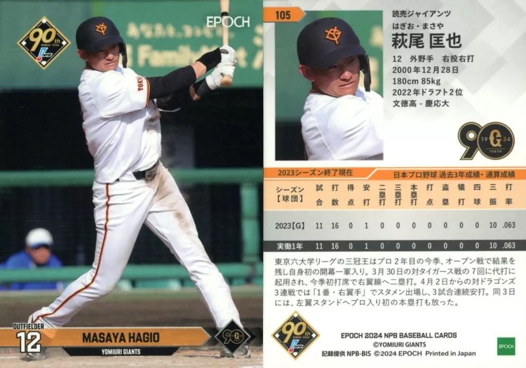 Japanese title: スポーツ/レギュラーカード/EPOCH 2024 NPB プロ野球カード 105[レギュラーカード]:萩尾 匡也