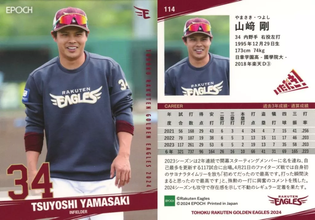 Japanese title: スポーツ/レギュラーカード/EPOCH 東北楽天ゴールデンイーグルス ベースボールカード 2024 2ND VERSION 114[レギュラーカード]:山﨑 剛