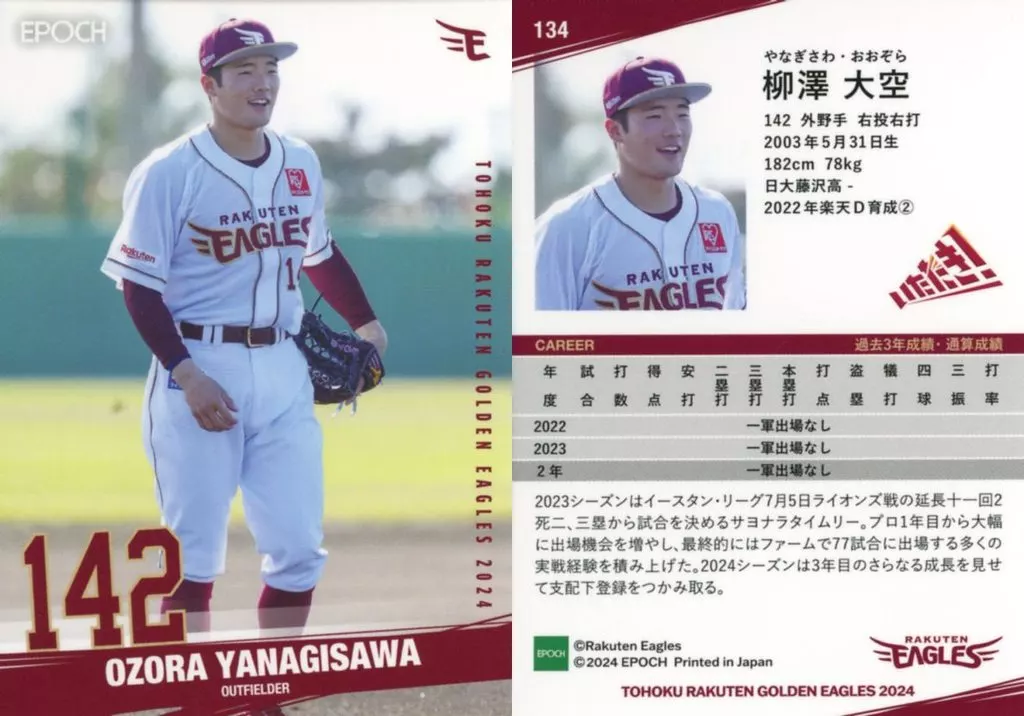 Japanese title: スポーツ/レギュラーカード/EPOCH 東北楽天ゴールデンイーグルス ベースボールカード 2024 2ND VERSION 134[レギュラーカード]:柳澤 大空