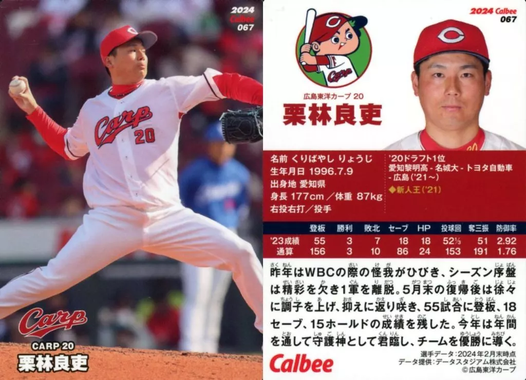 Japanese title: スポーツ/レギュラーカード/広島東洋カープ/2024プロ野球チップス第2弾 067[レギュラーカード]:栗林良吏