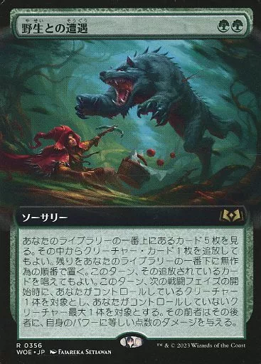 Magic The Gathering / Japanese version / R / Green / Eldrain no Mori Collector Booster 0356 [R] : 【 WOE 】 【 Extended Art Version 】 Encounter with the Wild / Feral Encounter