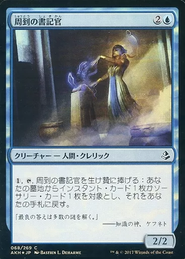 Japanese title: マジックザギャザリング/日本語版FOIL/C/アモンケット/青 [C]:【FOIL】周到の書記官/Scribe of the Mindful