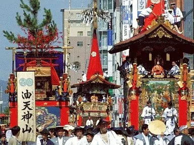 Apertura / Historia del Festival de Gion / Eventos del Santuario Yasaka-jinja / Festival de Gion y villa de Yamahoko / Hoko-tate/yama-tate/ carroza del festival de Gion no Bi / Yoiyama, víspera de la procesión de las carrozas del festival de Gion / procesión de Yamaboko / carroza del festival de Gion 32 / procesión Mikoshitogyo
