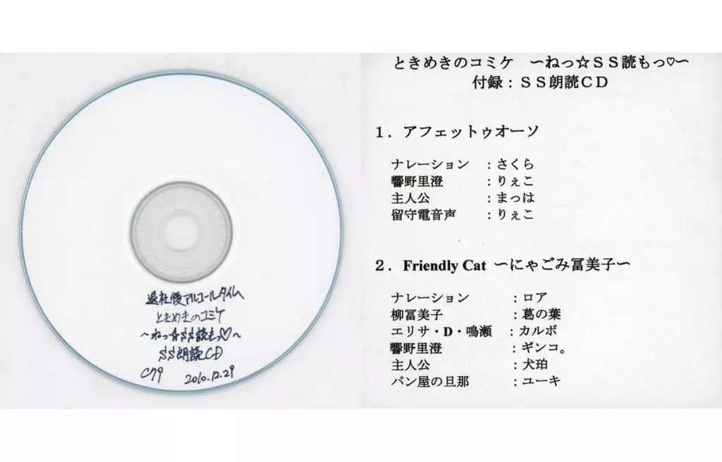 Nombre comercial en japonés: 同人ドラマCDソフト ときめきのコミケ ~ねっ☆SS読もっ~ 付録:SS朗読CD / 退社後アルコールタイム