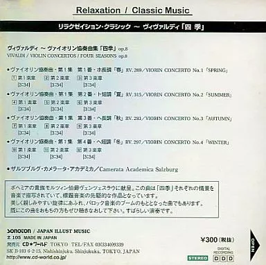 Nombre comercial en japonés: クラシックCD リラクゼイション・クラシック ~ヴィヴァルディ「四季」