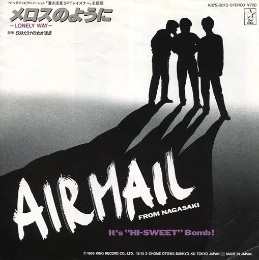 Nombre comercial en japonés: EPレコード エアメール from NAGASAKI / メロスのように/5分だけのわがまま ~TVアニメ「蒼き流星 SPTレイズナー」主題歌