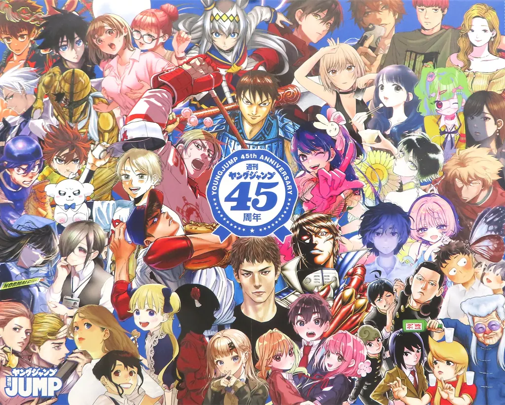 Este es el "45 th anniversary Pin Up Poster" en el suplemento vinculante de la edición del 13 de junio de 2024 de Young Jump.