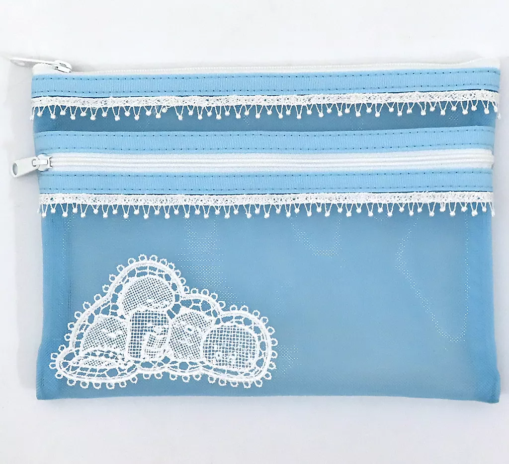 La combinación del encaje de motivo "Sukko" en la parte inferior izquierda de la bolsa y el encaje de borde pequeño es muy lindo.
