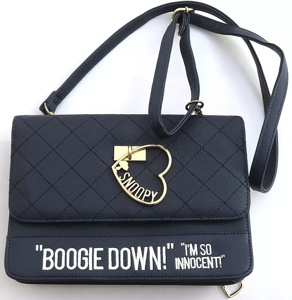 Descripción del producto : "PEANUTS (SNOOPY)" "Bolsa de hombro de cartera con anillo en forma de corazón de cuero sintético".