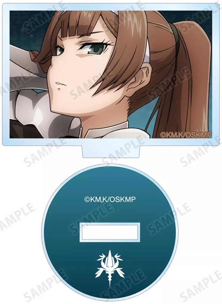 Un mini stand acrílico con ilustraciones de Ains, Albedo, ヤルダバオト, Nair, Remedios, Kalka y Kerato.