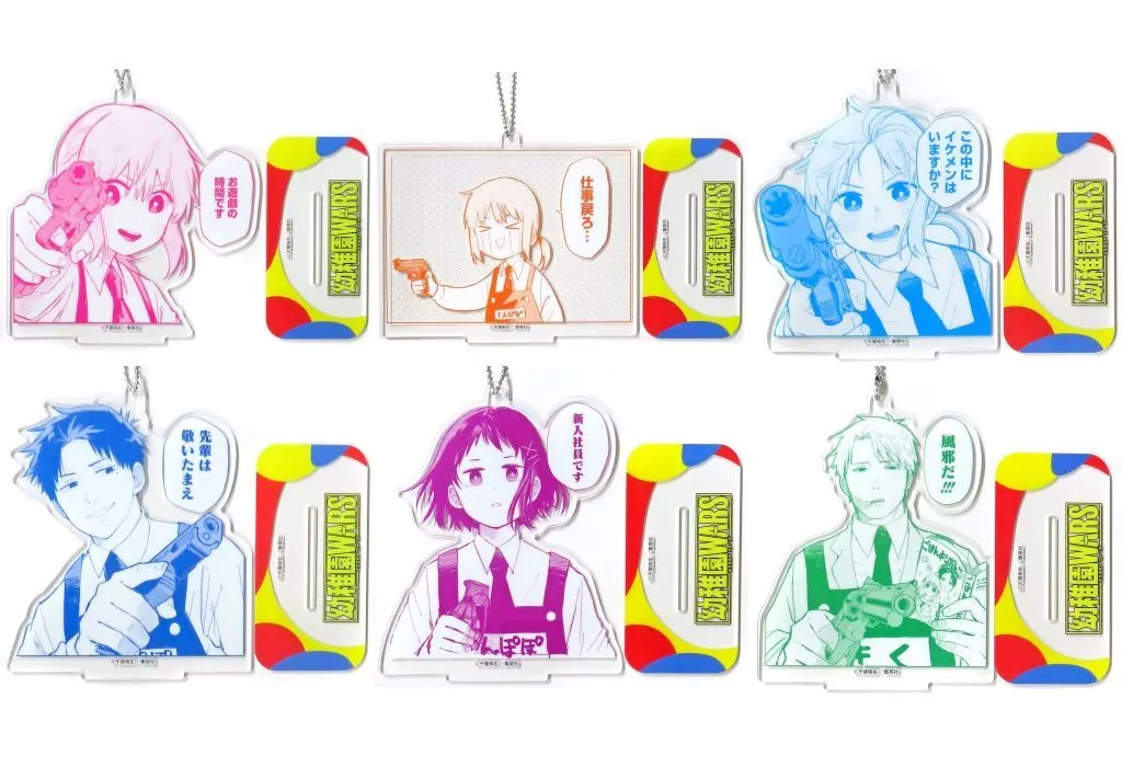 Explicación del producto : Este producto es un conjunto de 6 tipos de "Kindergarten Wars" "Clear Key Chain with Stand (EX)".