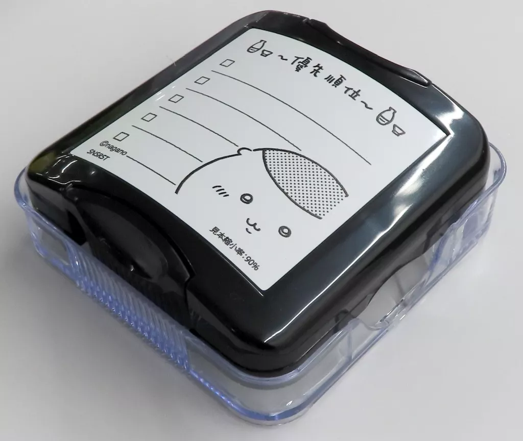 Una barra de sellos conveniente hecha por Shachihata Co., Ltd., que puede cambiar rápidamente a un mensaje de registro simplemente presionando su nota o nota.