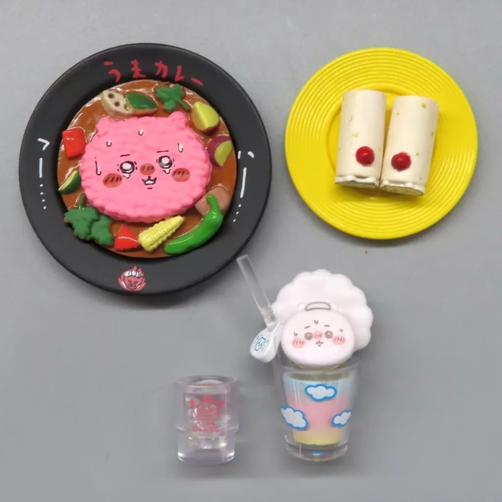 Delicioso curry (Oni) & Chikawa & Hachiwale envuelto en tortilla y bebida de yogur al estilo de las aguas termales (Chikawa) "Chikawa RestauranT Mini Figure Collection"