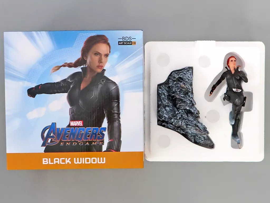 A partir de las imágenes originales de la película, la figura de la "Viuda Negra" Natasha Romanov se reproduce en una impresionante forma de construcción con una altura total de aproximadamente 21 cm (incluyendo la base).