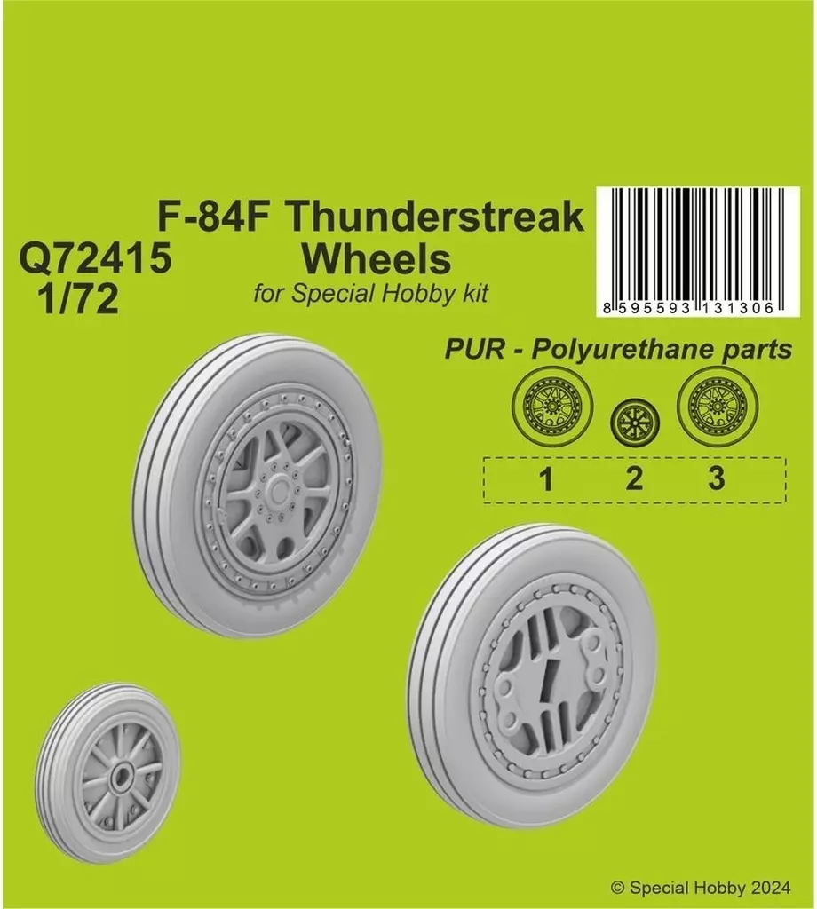 Nombre comercial en japonés: プラモデル 1/72 F-84F サンダーストリーク ホイール (スペシャルホビー用) ディティールアップパーツ [CMKQ72415]